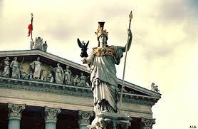 *En la mitología griega Atenea es hija de Zeus, nació ya adulta, de su frente, cuando Hefesto abrió le abrió la cabeza con un hacha para curarlo de los dolores que le atormentaban.